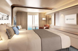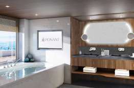 Toutes les cabines disposent d’un balcon privé ou d’une terrasse, en fonction de la catégorie. Elles bénéficient de l’air conditionné réglable individuellement, d’un accès internet Wi-Fi illimité et gratuit, et offrent, soit un lit double, soit deux lits simples. À l’intérieur de chaque cabine, vous trouverez un minibar, un dressing, une télévision écran plat avec service de vidéos à la demande, un téléphone, un coffre-fort électronique, des produits de bain de la marque française Hermès, un sèche-cheveux, et une station iPod. PONANT met aussi à votre disposition peignoirs, chaussons et serviettes.