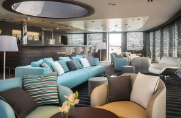 Sur le troisième pont se trouvent la réception, le bureau des excursions, une boutique et le salon principal d’une surface de 255 m2 (salon de thé, bar, programmation musicale, accès à la terrasse extérieure…).