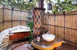 3 Garden Bures d’environ 26 m2 sont situées dans les jardins de l’hôtel. Elles peuvent accueillir un couple avec deux à trois enfants, en ajoutant des lits d’appoint. Chaque bure est disposée dans son propre jardin, séparée des autres par de petites haies. Elles disposent toutes de leur propre salle de bains, avec une douche ouverte sur l’extérieur.