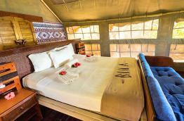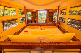 2 Double Rooms comprenant un lit queen-size, peuvent accueillir jusqu’à 2 personnes. Ce sont de grandes tentes de style safari, avec des murs en toile. Elles sont idéales pour les personnes soucieuses de leur budget : la salle de bains est commune, extérieure mais spacieuse, bien décorée et offre plusieurs douches et toilettes.
