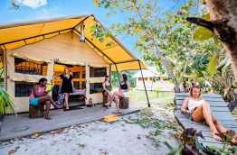 Barefoot Kuata Island dispose de 3 petites piscines, ombragées ou non, et entourées de chaises longues pour vous reposer en écoutant le bruit des vagues. Des hamacs sont également installés près de la mer et dans les jardins.