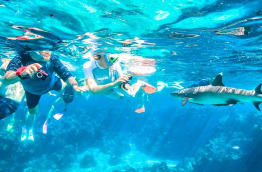 Le snorkeling en face de l’hôtel est très agréable. Vous pourrez facilement observer poissons et coraux, et même les requins de récif à pointes blanches.