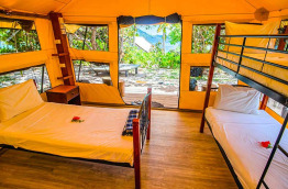 Barefoot Kuata Island offre aussi deux dortoirs, dont un réservé aux femmes. Ils comptent chacun 7 lits simples, dont certains sont superposés, et situés face à la mer. La vaste salle de bains commune est agréable, et se trouve à quelques pas des dortoirs.
