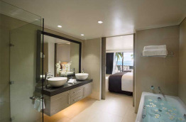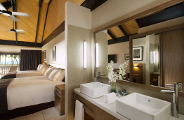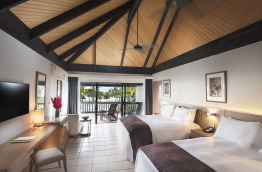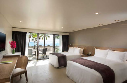 Les 32 chambres Double Queen Beachfront Guestroom sont regroupées dans deux bâtiments sur deux niveaux, rez-de-chaussée et 1er étage situés à proximité du complexe principal. Entièrement rénovées, et spacieuses (45 m2), elles vous assurent un excellent confort, notamment une salle de bains avec douche et baignoire. Elles peuvent accueillir confortablement 2 adultes et 2 enfants dans deux lits queen-size.