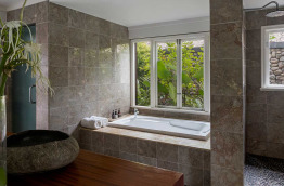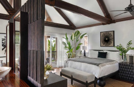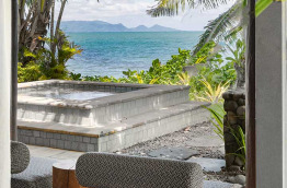 2 Beachfront Spa Suites de 80 m2 en bord de plage vous assurent une vue panoramique sur l’Océan Pacifique. Celles-ci comprennent une grande chambre avec un lit à baldaquin, plus une immense salle de bains avec un grand bain à jets, et une douche extérieure dans une courette close. Devant votre villa, vous trouverez des chaises longues, un coin repos ombragé, ainsi qu’une table et des chaises.