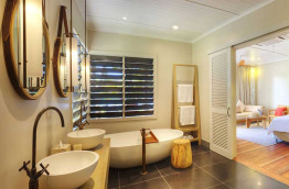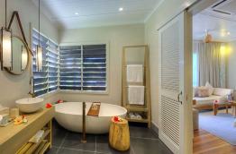 2 Beachfront Retreat bénéficient en plus d'une agréable terrasse en bois totalement privée, avec baignoire et douche extérieure.