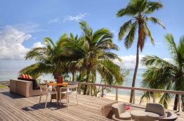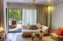 14 Beachfront Villa sont toutes situées en front de mer. Spacieuses, environ 65 m2, elles possèdent un petit coin salon et une grande terrasse équipée de chaises longues. Tous les lits font face à la mer, vous pourrez admirer la vue dès votre réveil. Les villas sont groupées par deux, elles sont mitoyennes et communicantes, en faisant un choix idéal pour les familles.