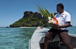 Vomo Island Resort est situé sur une île qui a la particularité de se trouver entre les îles Yasawa et les îles Mamanuca. Cet hôtel de luxe est idéal pour un séjour balnéaire dans un cadre paradisiaque. Le transfert en bateau depuis Port Denarau dure environ 1 h 15. Si vous le souhaitez, vous pouvez opter pour un transfert de 15 minutes en hydravion ou en hélicoptère.
