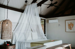Les 10 Deluxe Beachfront Bures offrent une superficie de 135 m2, et sont totalement indépendantes. La partie chambre est un peu surélevée afin de bien séparer la partie salon, et surtout pour vous permettre de profiter du panorama depuis votre lit.