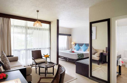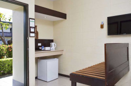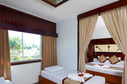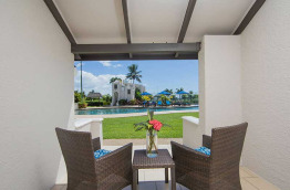 Les Pool View Room offrent une petite terrasse avec vue sur la piscine. Vous n’aurez qu’à faire quelques pas dans le jardin pour vous retrouver les pieds dans l’eau. À l’intérieur, il y a une chambre avec un lit queen-size et un canapé-lit dans un espace séparé.