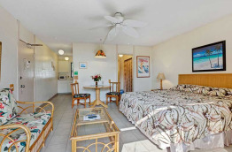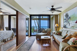 Les appartements 1-Bedroom Mountain Side et 1-Bedroom Partial Ocean View sont également situés de l’autre côté de la route, et font de 55 à 60 m2 de surface. Ils se composent d’une chambre séparée, plus une pièce de vie avec salon et cuisine aménagée. Le salon comprend un canapé convertible double. Ils peuvent accueillir 4 personnes.