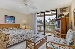 Les appartements du Kona Bali Kai Resort sont simples mais confortables et fonctionnels. La résidence bénéficie d’un bon emplacement en bord de mer, à la fois proche de Kailua-Kona et de la jolie plage de Magic Sands.