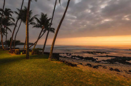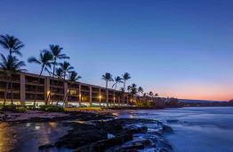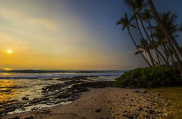 Comme l’immense majorité des établissements de Big Island, le Kona Bali Kai Resort n’a pas de plage. La côte est composée de roche volcanique noire sur laquelle viennent s’écraser les vagues. En revanche, la vue est spectaculaire, il n’y a rien qui vienne troubler la vue panoramique sur le coucher de soleil.