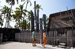 En descendant vers le Sud, faites une première escale au Parc national historique de Pu’uhonua o Honaunau, c’est un site historique qui vous permettra de comprendre le Hawai’i dans les années 1600.