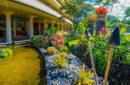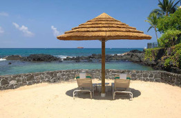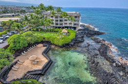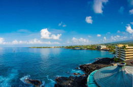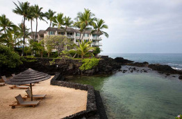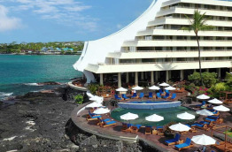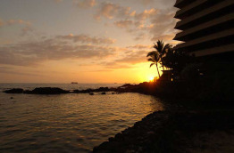 L’hôtel Royal Kona Resort se trouve à 15 km de l’aéroport, soit environ 20 à 25 minutes de route. Il est également proche du centre-ville de Kailua-Kona, à 1,5 km seulement qu’il est possible de parcourir à pied en 15 minutes environ, ou 5 minutes en voiture. Construit en 1968, l’hôtel est composé de 3 bâtiments principaux qui abritent les chambres. Au centre, le coeur de l’hôtel, la Ali’i Tower, entourée de la Lagoon Tower et de la Bay Tower. Les jardins sont verdoyants et bien entretenus : cocotiers, frangipaniers et nombreux arbustes à fleurs tropicales. Le Royal Kona Resort bénéficie d’un emplacement de choix en bordure de mer, sur un promontoire de roche volcanique. La vue sur la mer est spectaculaire dans toutes les parties de l’hôtel. Il n’y a pas de plage, mais un coin aménagé avec du sable. En revanche, un lagon protégé a été construit devant la Lagoon Tower pour pouvoir vous baigner à l’abri du ressac. Sa proximité avec la ville de Kailua-Kona est un bel atout. Vous pouvez vous y rendre facilement à pied, et vous trouverez de nombreux restaurants entre l’hôtel et le centre-ville historique de Kailua. Le choix de restaurants et de boutiques ne manque pas. Le Royal Kona Resort offre vraiment un excellent rapport qualité-prix.