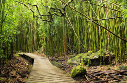 Arrivée à l’aéroport de Kahului à Maui et prise en charge de votre véhicule de location. On vous propose de prendre immédiatement la route du Nord de Maui pour rejoindre la première étape de votre circuit, le village de Hana, à l’extrême Est de Maui. Cette dernière est célèbre pour avoir donné son nom à la légendaire « Road to Hana ». Elle commence dans la ville de Kahului et serpente le long de la côte pendant 83 km. Empruntez la route et admirez des forêts tropicales, des cascades et des paysages côtiers spectaculaires. Soyez patients, il faut du temps pour profiter de cette route, passer les 617 virages et les 56 ponts à voie unique. Il faut compter entre deux heures ou la journée en fonction des arrêts et des activités que vous voudrez faire. Ne vous inquiétez pas, vous pourrez faire au retour les visites que vous aurez manquées à l’aller.