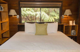 Chalet Kilauea ne comprend que 6 chambres : 5 se trouvent dans le bâtiment principal, et 1 se trouve dans un bungalow indépendant. Toutes différentes, elles ont en commun une décoration au style rustique.