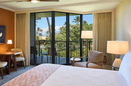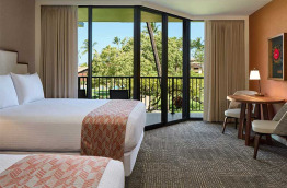 L’hôtel Outrigger Ka’anapali Beach Resort offre 432 chambres, dont 14 suites réparties dans quatre ailes : Papaku South Wing, Kauhale Southeast Wing, Wekiu East Wing, et Aouli North Wing. Le plus ancien bâtiment, Aouli, fait seulement deux étages et n’a pas d’ascenseur. Les trois autres ont un ascenseur et vont jusqu’à cinq étages maximum. Chaque chambre bénéficie d’un balcon pourvu d’une table et de chaises. Identiques au niveau des prestations fournies, elles sont classées en six catégories. Ce qui fait la différence, c’est la vue. Certaines chambres sont communicantes et plutôt spacieuses, avec un minimum de 39 m2. La décoration est rustique, rotin, bois, et tissus colorés, avec un grand lit king-size ou des lits jumeaux. Les chambres avec la dénomination « Premium » ont été récemment rénovées, elles profitent donc d’une décoration et d’équipements plus modernes.