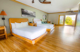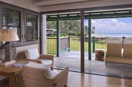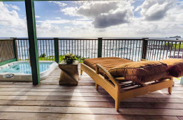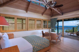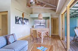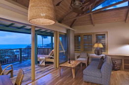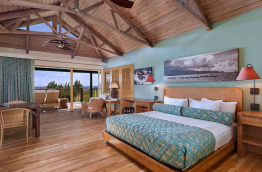 Les 5 Oceanfront Bungalow Premier Suite sont uniquement pourvus d’un lit double king-size. Ils font 87 m2 avec un salon séparé.