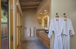 À environ 100 mètres de la propriété principale, sur un terrain en bord de mer, on trouve 44 bungalows en bois et acier, surélevés et construits en terrasse face à la mer. Cette zone exclusive bénéficie en plus d’une piscine et d’un parking réservé. Les équipements sont identiques, chaque bungalow est pourvu d’une belle terrasse :