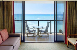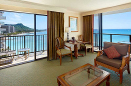 15 Club Ocean Front Suite de 52 m2, composées d’une chambre et d’un salon indépendant, sont positionnées dans l’angle Ouest du bâtiment. Elles donnent ainsi à la fois sur Waikiki, mais aussi sur la longue plage vers l’Ouest. Le coucher de soleil que vous pourrez admirer depuis votre balcon est magnifique.