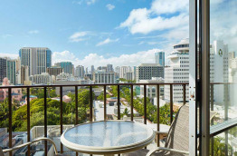 131 City View de 33 m2 qui donnent sur l’arrière de l’hôtel donnant majoritairement sur Kalakaua Avenue, et quand vous montez dans les étages, la vue se dégage sur la montagne de Oahu.