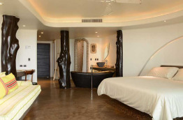 Elles sont toutes équipées d’une salle de bains avec douche, baignoire en terre cuite, téléphone, ventilateur, nécessaire à thé et café, accès internet, coin bureau, coffre-fort, minibar, et d’une terrasse privée qui fait face à l’océan. Les chambres ne sont pas pourvues de télévision, c’est un choix délibéré de la direction pour que vous déconnectiez du monde et puissiez profiter de l’endroit.