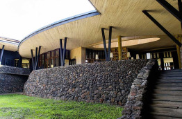 L’hôtel explora Rapa Nui est extrêmement bien intégré dans son environnement. Les architectes ont imaginé une construction éco-responsable à base de produits naturels bruts. L’architecture n’est pas sans rappeler les habitations des premiers habitants de Rapa Nui. Elle fait la part belle à la pierre volcanique sombre, et au bois brut.