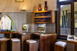 Une boutique bien achalandée propose un choix d‘équipements de randonnée, des vêtements, souvenirs et quelques articles de dépannage.
