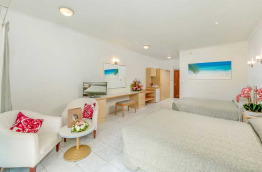 Pour profiter d'une superbe vue sur le lagon et ses motus, choisissez l’une des 13 Deluxe Beachfront Room. Vous y trouverez en plus, pantoufles et peignoirs.