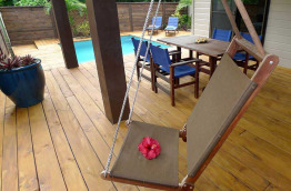3 Lagoon View Villas d’une ou deux chambres sont nichées dans le jardin tropical planté de cocotiers, bananiers, papayers, mais finalement pas très éloignées de la plage.
