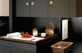 The Peak Bar élabore des cocktails ainsi que des repas légers. Ses tables sont placées autour d’une petite plantation de bambous et une partie de son éclairage provient de lanternes traditionnelles japonaises, en papier washi.