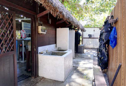Le centre de plongée est situé au milieu de l’île. Il organise 3 plongées par jour, toujours en petit groupe. Le récif et les patates de corail sont très colorés. On y voit des coraux durs, des coraux mous, de magnifiques tables d’acropora et des anémones de toutes les couleurs. On plonge le long de petits tombants recouverts de gorgones ou autour de pinacles. La faune est extrêmement abondante et variée, éblouissante de couleurs et de vivacité : mérous, énormes bancs de vivaneaux, de gaterins mouchetés, de fusiliers, des mérous, des tortues, des nudibranches, des langoustes, des perroquets, des demoiselles, des poissons anges et papillons, des barracudas, des carangues, des platax, des poissons clowns, etc. Tout ce petit monde grouille et se côtoie sans se mélanger. L’absence de pollution et de pêche intensive profite au monde sous-marin, pour le plus grand bonheur des plongeurs et des biologistes.