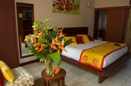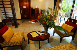 Au rez-de-chaussée, les 11 chambres Tropicales de 25 m2 sont plus lumineuses avec une baie vitrée sur l'arrière, et une petite terrasse privative.