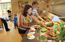 Les petits-déjeuners sont servis au restaurant Le Gauguin, sous forme de buffet ou à la carte. Un brunch est proposé le week-end. Pas de restauration le midi ni le soir, mais l’Anse Vata et ses nombreux restaurants n’est qu’à quelques mètres à pied, et vous pouvez cuisiner dans votre studio.