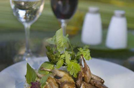 Une grande case kanak abrite la réception, le bar et le salon. Le restaurant Ka Mâ, au milieu des pins colonnaires et à l’ombre du grand banian, est ouvert sur une large terrasse et sur la baie de Port Boisé. Le chef vous proposera des repas mélanésiens et des produits locaux.