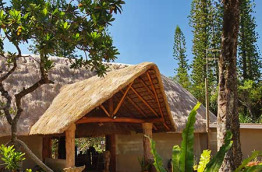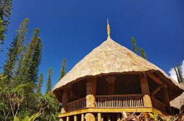 Le Kanua Tera Ecolodge est conçu comme un village mélanésien, dans un lieu paradisiaque, il est baigné par les couleurs du Sud calédonien, le rouge de la terre, le vert vif de la végétation, et le bleu turquoise du lagon qui le borde.