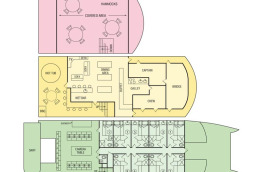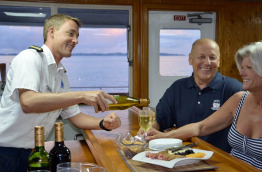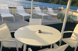 | Aménagements cabines | 9 cabines : 8 cabines Deluxe avec un lit queen-size et un lit superposé, 1 cabine avec 1 lit double et 1 lit simple superposé. Serviettes de toilette, air conditionné dans les cabines, douche et toilettes privatives, sèche-cheveux. |