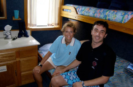 1 cabine Double Stateroom équipée d’un lit double et d’un lit simple superposé est un peu plus petite. Elle bénéficie d’un accès direct à la plateforme de plongée.