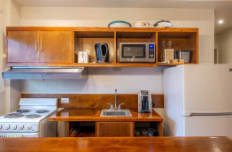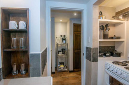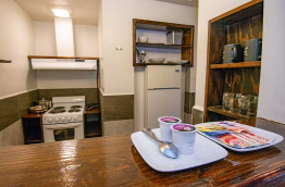 On retrouve également 1 Standard Room with Kitchen, équipée en plus d’un petit coin cuisine (cuisinière, petit réfrigérateur, micro-ondes et machine à café). Elle offre une vue sur la ville.