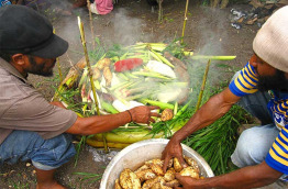 Ce matin, vous irez à la découverte du village d’Asaro, avec un show des Mud-Men, et un déjeuner traditionnel « Mumu ». Le « Mumu » est un repas cuit à la vapeur sur des pierres chaudes, dans un four creusé dans le sol. Il est composé de légumes verts, de patate douce et igname, poulet ou porc.