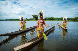 L’après-midi, vous rejoindrez le village de Kundiman, et assisterez à une démonstration du traitement du palmier Sago. Cette plante locale est l’aliment de base des tribus de la région. Au cœur du pays Arambak, dans le petit village de Kundiman, le temps semble s'être arrêté, la façon de vivre est restée la même depuis des siècles. Aucune route, juste des canoës pour se déplacer sur la rivière, et tout autour la jungle et le chant des oiseaux.