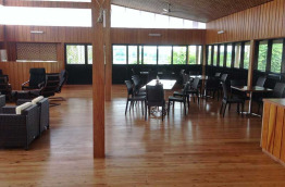 Les parties communes sont regroupées dans un bâtiment central qui comprend le bar, restaurant, et un salon équipé d’une cheminée centrale.