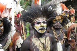 Vous terminerez votre séjour dans la région de Tari, en compagnie de la flamboyante tribu Huli, aux costumes et maquillages hauts en couleur. Vous pourrez peut-être observer le magnifique Paradisier à rubans à Ambua.