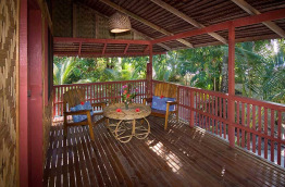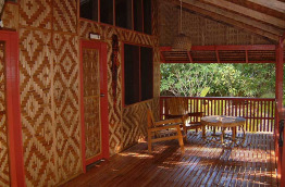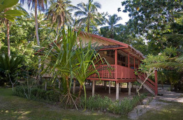 Les bungalows sont très espacés les uns des autres dans la végétation naturelle de l’île. Ils sont construits en bois et bambou dans un style traditionnel pour s’intégrer dans l’environnement, et chacun est pourvu d'une véranda.