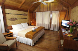 L’Executive Bungalow est en fait une chambre située dans un bloc regroupant 4 chambres : 2 chambres en rez-de-chaussée, et 2 à l’étage. Chacune comprend un lit double, plus un lit simple. Les blocs sont en retrait de la plage, dans les jardins. Certaines chambres ont une vue sur la mer, d’autres uniquement sur la piscine.