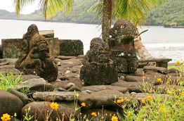Hiva Oa est l’île des tikis. Il y a ici de nombreux sites archéologiques dont celui du me’ae I’ipona, à Puama’u, qui abrite le plus grand tiki de Polynésie, Taka’i’i (2,43 m).