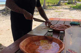 Vous ferez ensuite escale dans un petit village de pêcheurs pour déjeuner. Au menu : poisson cru à la tahitienne, poissons grillés tout juste pêchés dans le lagon, riz cuisiné au lait de coco, pain coco et flan coco… Un véritable festin de produits frais et locaux !