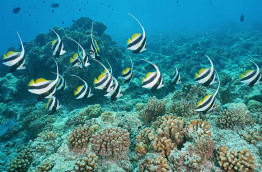 Vous vous rendrez d’abord sur un spot réputé pour la présence des raies manta. Ces créatures surprenantes se réunissent en effet dans cette « station de nettoyage », où de petits poissons nettoyeurs viennent les débarrasser de leurs parasites tout en se nourrissant : un échange gagnant-gagnant ! Vous serez émerveillés par l’immensité des raies manta : elles atteignent le plus souvent 4 à 5 mètres d’envergure. Prenez le temps d’admirer leurs déplacements majestueux et lents, mais ne prenez pas peur si l’une d’entre elles s’approche tout près de vous : les raies manta ne sont absolument pas agressives ni dangereuses, elles sont simplement très curieuses.