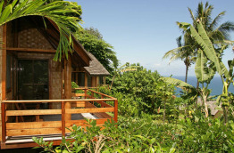 5 Mountain Bungalows sont nichés dans la végétation luxuriante, et bénéficient d’une vue vers l’Est, sur la vallée de Tehueto et le Mont Temetiu depuis la terrasse.